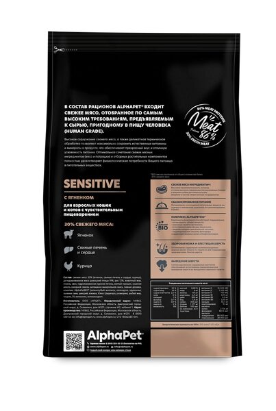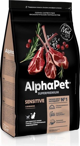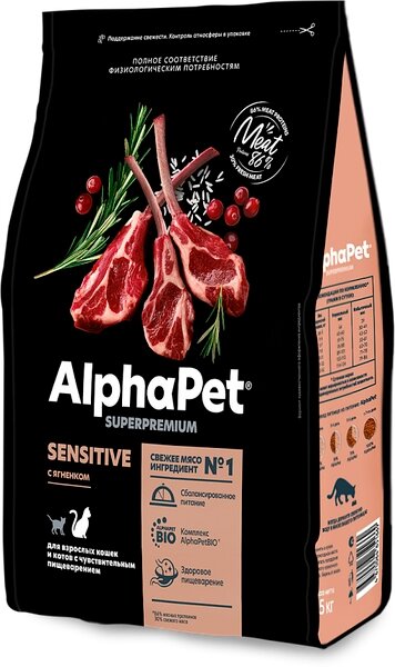 Сухой корм для кошек AlphaPet для взрослых с ягненком / 121336