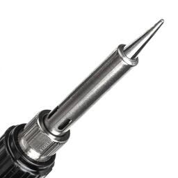 Паяльная станция PEC60-C позволяет быстро и легко выполнять паяльные работы как в профессиональной мастерской, так и в домашних условиях. Отличается высокой скоростью нагрева, компактностью и функциональностью. Антистатическая защита обеспечивает сохранность высокочувствительных радиоэлементов, повышает безопасность работ и продлевает срок службы станции.Преимущества:Точная установка температуры нагрева жала аналоговым регулятором.Высококачественный нагревательный элемент для быстрого достижения необходимой температуры жала.Конусообразное жало со специальным покрытием обеспечивает качественную пайку.Световой индикатор работы.Нагревательный элемент со встроенным контроллером позволяет поддерживать заданную температуру нагрева жала. Применение: для пайки электронных плат и других мелких деталей.