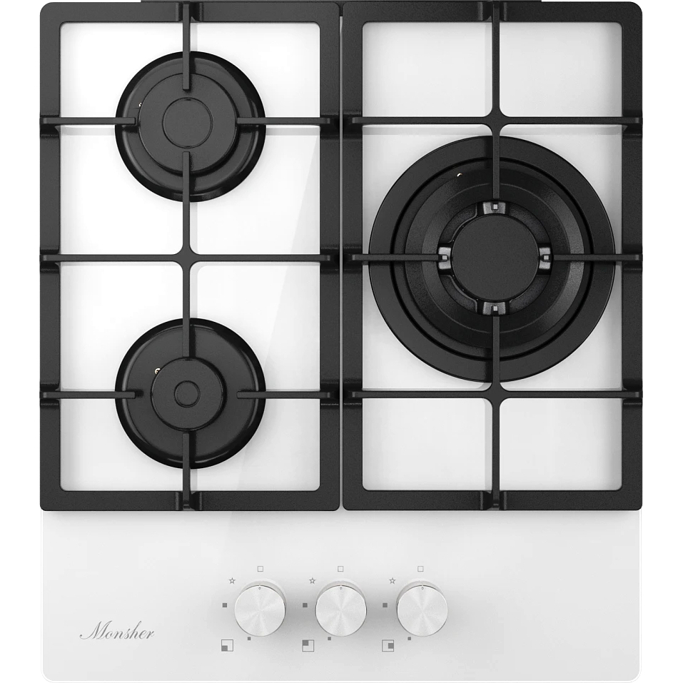 Варочная поверхность MONSHER/ Варочная поверхность MONSHER, газ, High-Tech, 45 см, автоматический электроподжиг, газ-контроль, форсунки под сжиженый газ, SABAF конфорки, чугунные решетки, цвет белый