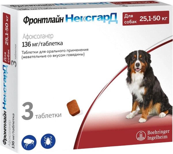 Таблетки от блох Boehringer Ingelheim Фронтлайн Нексгард для собак 25.1-50кг 136мг