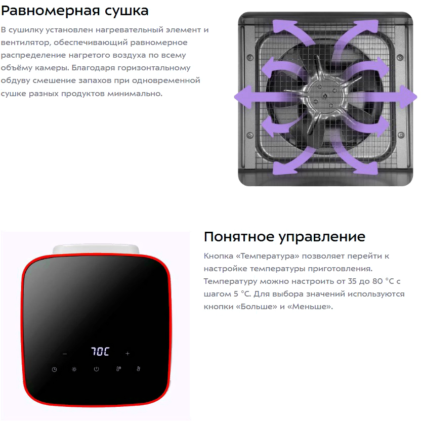 • Температура сушки 80 °C (35–80°C с шагом 5°C)