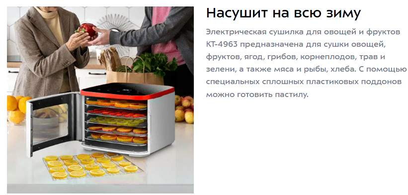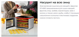 Сушилка для овощей и фруктов Kitfort КТ-4963
