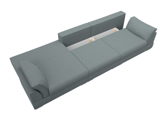 При компактных габаритах: 372x116x90 см подойдет для комнат любых размеров, легко раскладывается, обеспечивая спальное место 150х300 см.