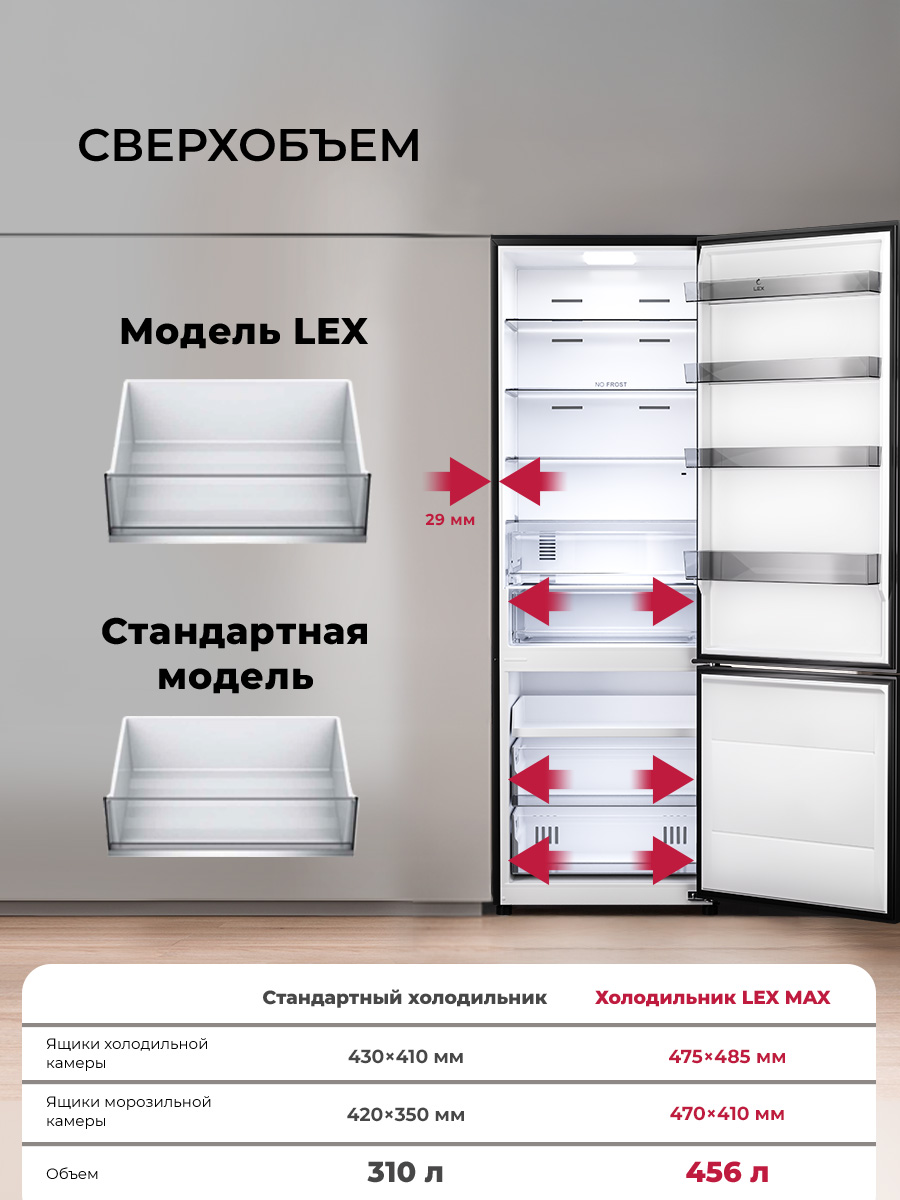 Холодильник отдельностоящий с инвертором LEX LKB201BLGIDMax Wind