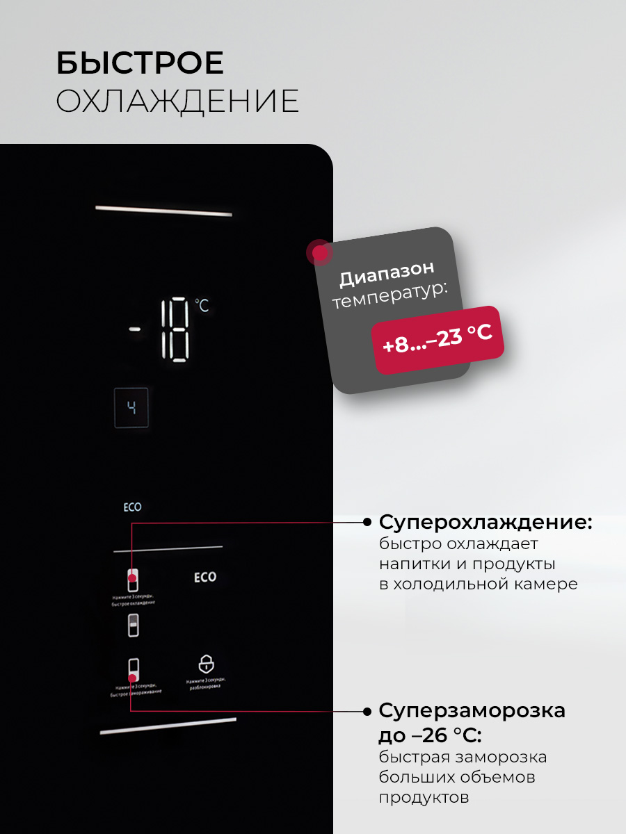 Холодильник LEX LKB201 оснащен современным инверторным компрессором, который гарантирует эффективную и практически бесшумную работу. Он также обеспечивает низкий расход энергии и долго поддерживает температуру без электропитания. Технология Total No Frost значительно упрощает обслуживание и помогает устанавливать оптимальную температуру и влажность.