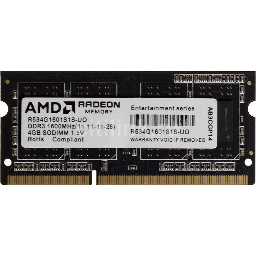 ОЗУ AMD SO-DIMM DDR3 4Gb 1600MHz R534G1601S1S-UO OEM PC3-12800 CL11 204-pin 1.5В