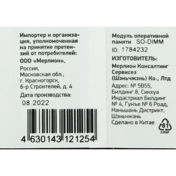ОЗУ Digma (DGMAS31600004S) DDR3L 4Gb 1600MHz RTL PC3-12800 CL11 SO-DIMM 204-pin 1.35В single rank