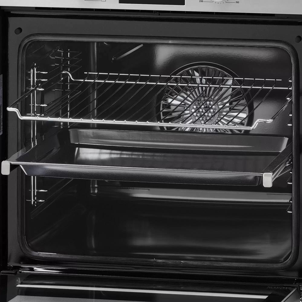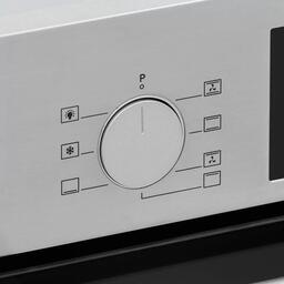 Особенности дизайна и внешней панели управления — также важный пункт при выборе духовки на кухню. В данной модели нужно обратить внимание на цвет — нержавеющая сталь,