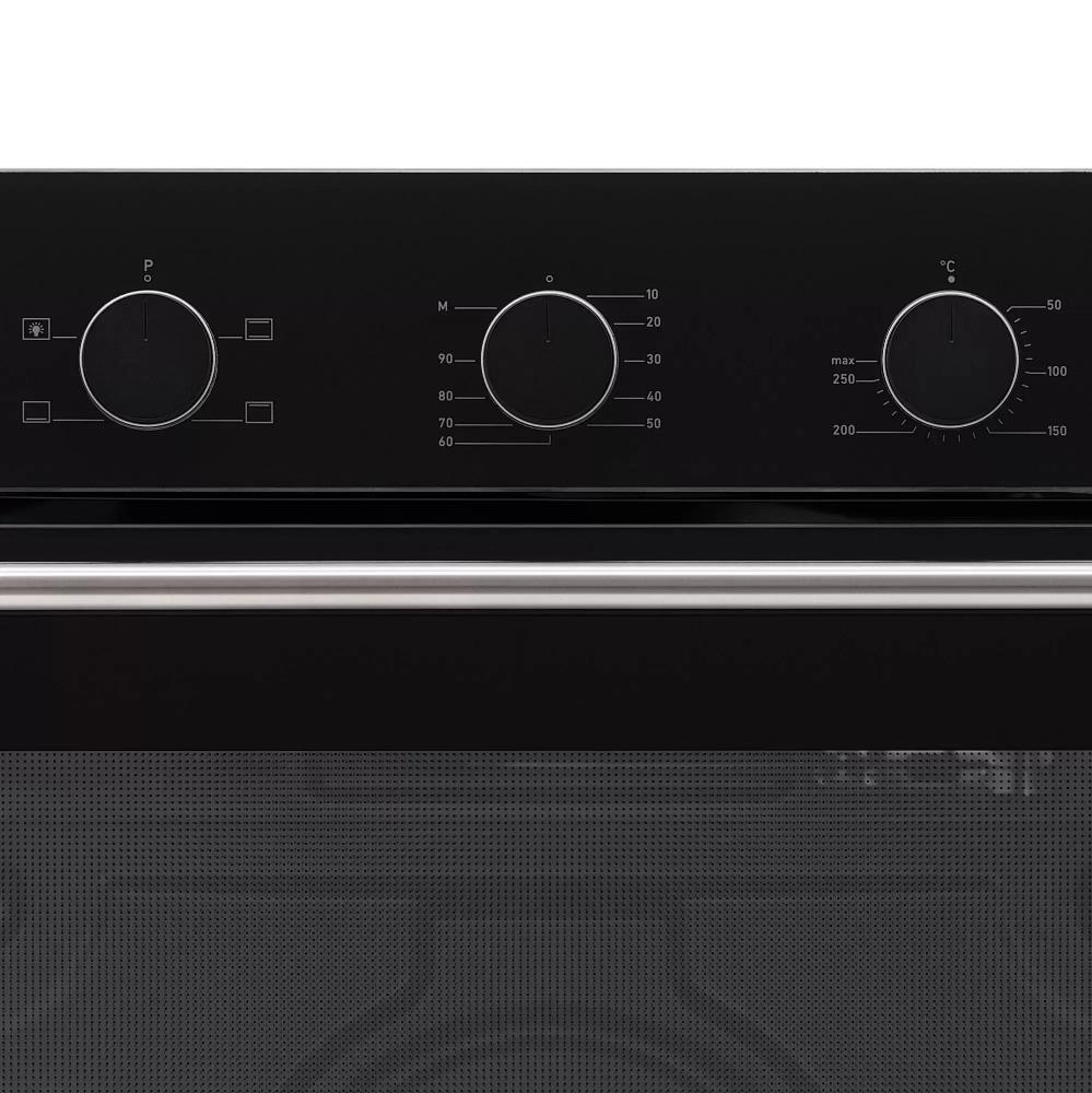 Особенности дизайна и внешней панели управления — также важный пункт при выборе духовки на кухню. В данной модели нужно обратить внимание на цвет — черный, Механическая панель управления позволяет быстро разобраться в настройке программ и не требует чрезмерных усилий.