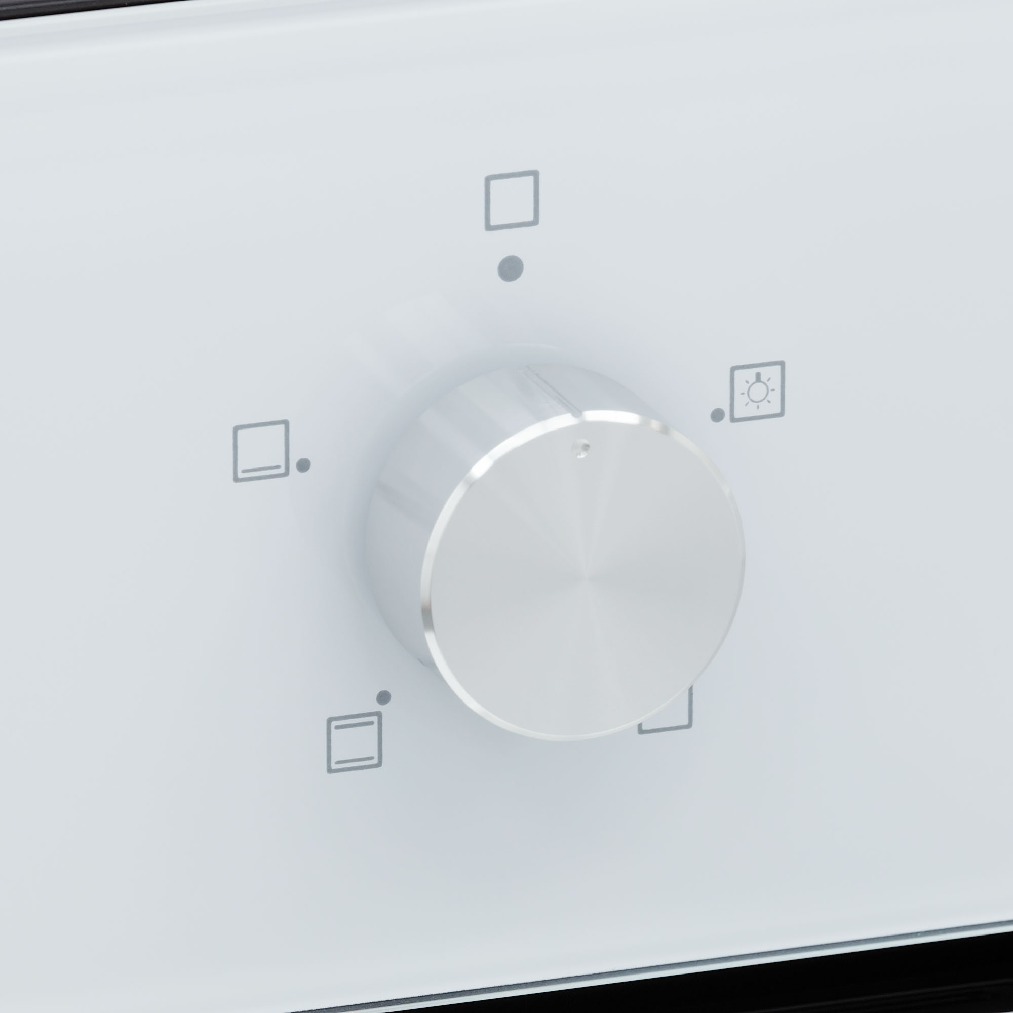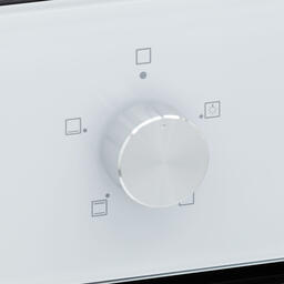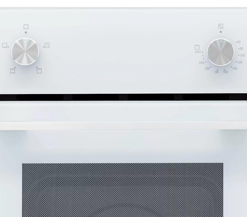 Особенности дизайна и внешней панели управления — также важный пункт при выборе духовки на кухню. В данной модели нужно обратить внимание на цвет — белый, Механическая панель управления позволяет быстро разобраться в настройке программ и не требует чрезмерных усилий.
