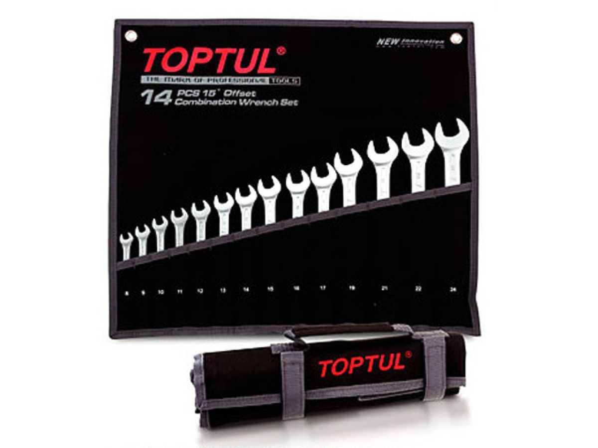 - Название и артикул Набор ключей комбинированных 8-24мм 14шт (черное полотно) TOPTUL (GPAB1404)