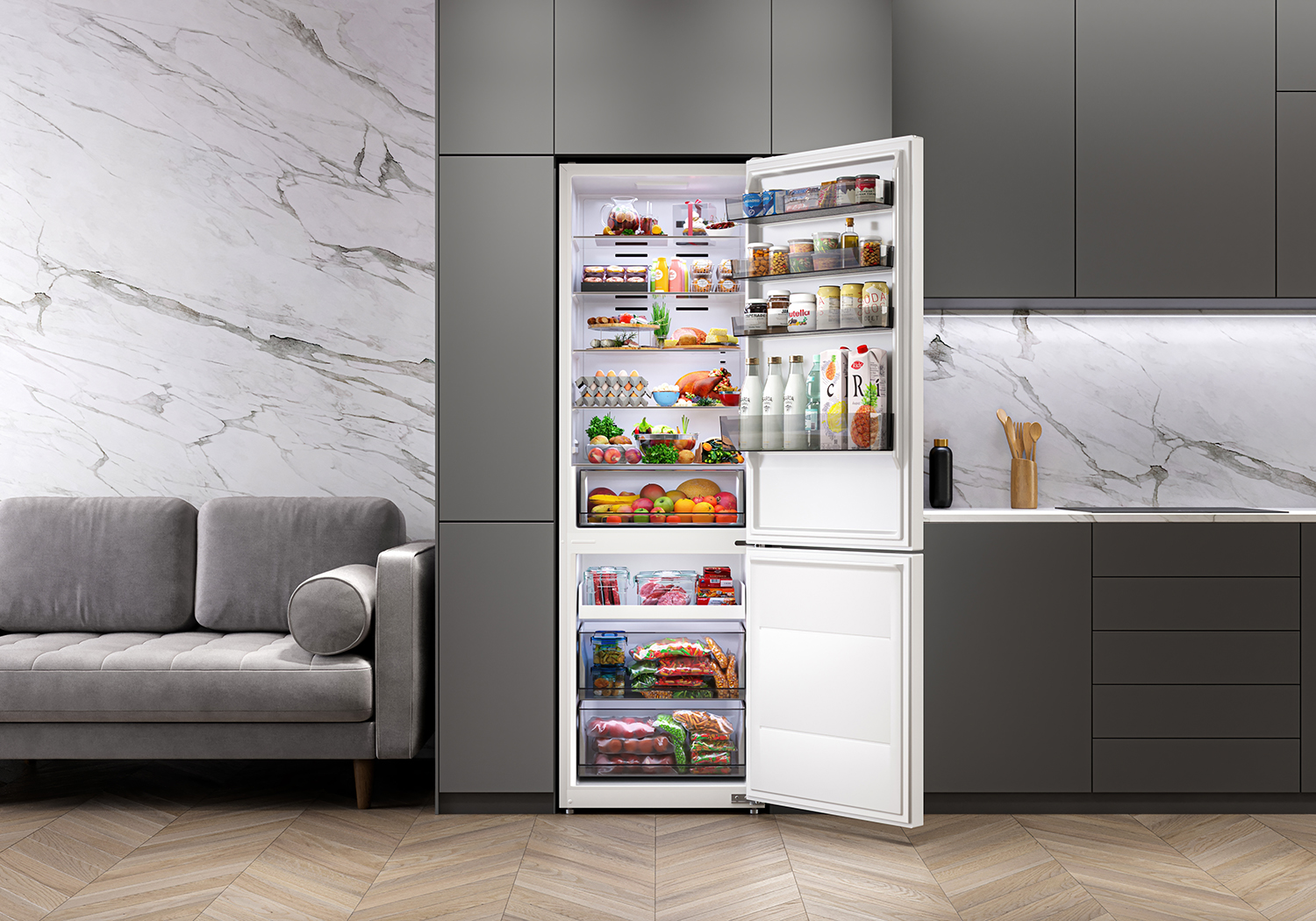 Два отделения с полезным объемом 456 литров дают возможность хранить все блюда и напитки на удобном уровне. Внутреннее пространство холодильника организовано максимально эффективно благодаря регулируемым полкам.