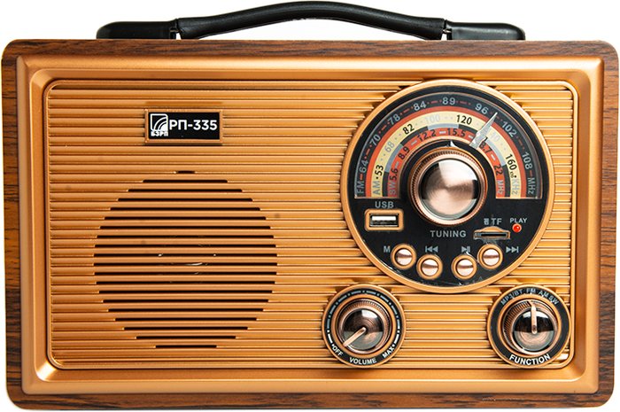 - ✅ БЗРП РП-335 достаточно крупный радиоприемник с мягкой удобной ручкой для переноски. ✅ Особенностями радиоприемника БЗРП РП-335 является:✅ Универсальное питание: от сети 220В, блок питания 6В, либо от встроенного аккумулятора 1200 мА/ч; ✅ Функция воспроизведения с внешних носителей: USB-накопителя и microSD-карты; ✅ Bluetooth, версия 5.0 для воспроизведения музыки с мобильных устройств (для подключения беспроводных наушников не подходит). ✅ Ретро-дизайн приятно удивит покупателя и навеет ностальгией. Подойдет под любой интерьер, благодаря своему дизайну. Находясь на витрине, привлекает внимание покупателей. ✅ Радиоприемник обеспечит уверенный прием сигнала в УКВ/СВ/КВ диапазонах. ✅ Радиоприемник БЗРП РП-335 оснащен одним динамиком мощностью 5Вт. ✅ БЗРП РП-335 достаточно крупный радиоприемник с мягкой удобной ручкой для переноски. ✅ Особенностями радиоприемника БЗРП РП-335 является:✅ Универсальное питание: от сети 220В, блок питания 6В, либо от встроенного аккумулятора 1200 мА/ч; ✅ Функция воспроизведения с внешних носителей: USB-накопителя и microSD-карты; ✅ Bluetooth, версия 5.0 для воспроизведения музыки с мобильных устройств (для подключения беспроводных наушников не подходит). ✅ Ретро-дизайн приятно удивит покупателя и навеет ностальгией. Подойдет под любой интерьер, благодаря своему дизайну. Находясь на витрине, привлекает внимание покупателей. ✅ Радиоприемник обеспечит уверенный прием сигнала в УКВ/СВ/КВ диапазонах. ✅ Радиоприемник БЗРП РП-335 оснащен одним динамиком мощностью 5Вт.