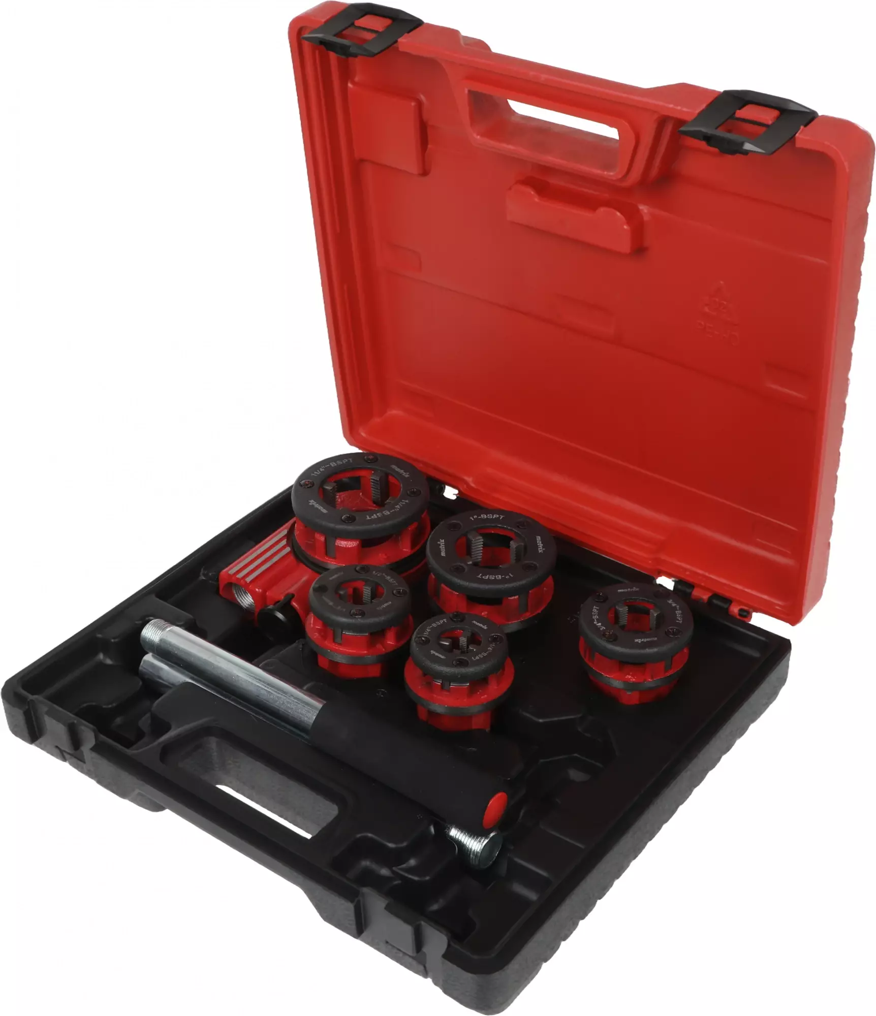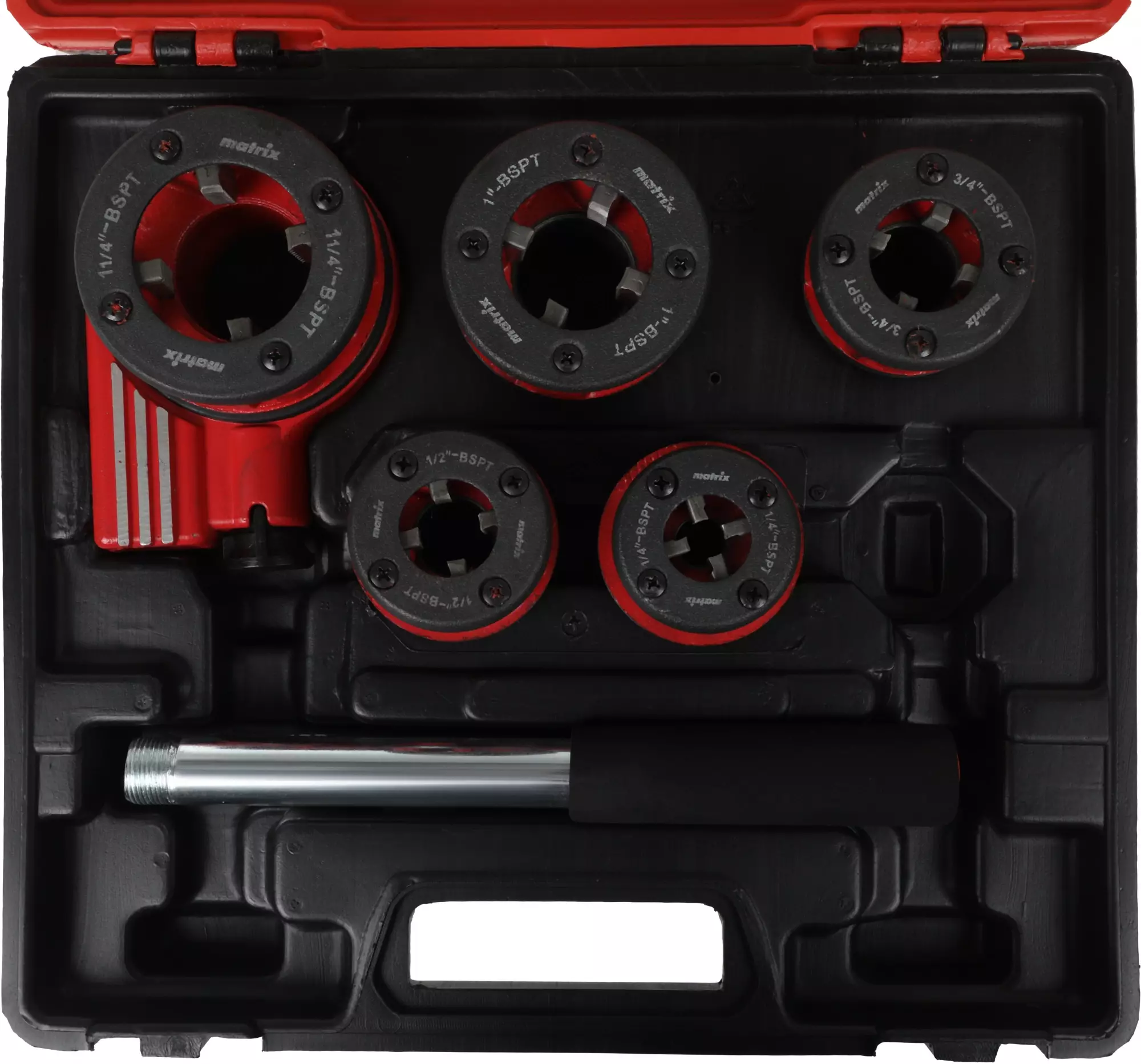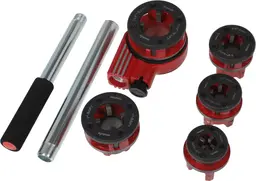 • Другие инструменты/принадлежности Трубные клуппы 1/2", 1/4", 3/4", 1", 1 1/4"; Плашкодержатель с трещоткой; Сборная рукоятка.