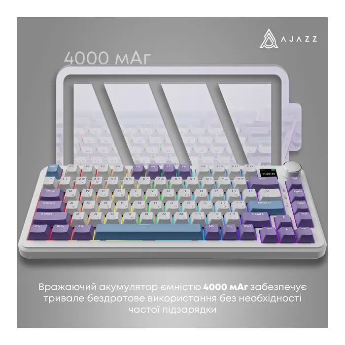 Клавіатура Ajazz AK820 MAX Magnetic switches Purple RGB USB/Wireless/Bluetooth UA Purple (AK820MAX-M-PWB)