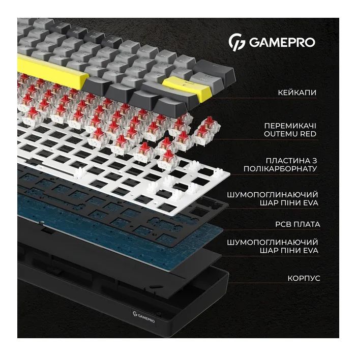 Клавіатура GamePro MK130G Pro Outemu Red Switch Hot-Swap 60 RGB USB/Wireless/Bluetooth Black (MK130G Pro)