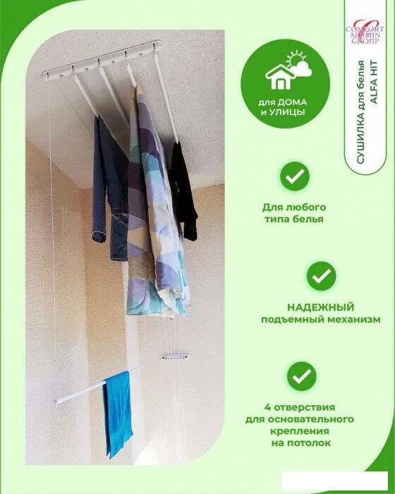 Сушилка для белья Comfort Alumin Alfa Hit Стальная 190 см