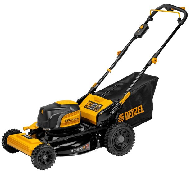 - Комплектация - Газонокосилка в сборе с ножом и колесами;- Травосборник;- Дефлектор бокового выброса;- Аккумуляторная батарея Li-Ion 62 В, 4 Ач;- Руководство по эксплуатации с гарантийным талоном.
