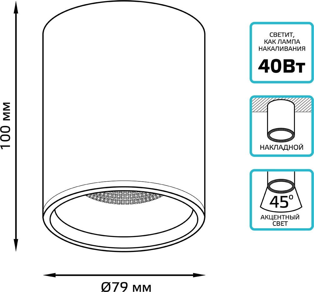 Светильник Gauss Overhead потолоч. 12Вт 4100K цв.св.:белый нейтральный черный (HD007)