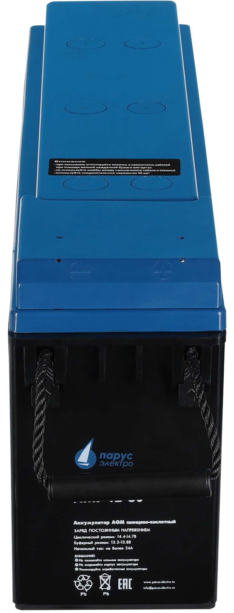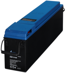 Свинцово-кислотные аккумуляторные батареи «Парус электро» серии HMF с фронтальным расположением клемм удобны для установки и обслуживания в 19-ти дюймовой телекоммуникационной стойке. Модели серии HMF имеют повышенную удельную емкость, характеризующую количество энергии в единице объема элемента, что позволяет размещать больше аккумуляторов на единицу площади. Применение утолщенных пластин с высококачественными решетками из сплава свинца-олова-кальция гарантирует длительный срок службы АКБ. Прочные медные клеммы обеспечивают высокую проводимость при больших разрядных токах, а современная технология герметизации крышки моноблока позволяет создать надёжное соединение корпуса по всей длине. Срок службы аккумуляторов серии HMF составляет до 12 лет.