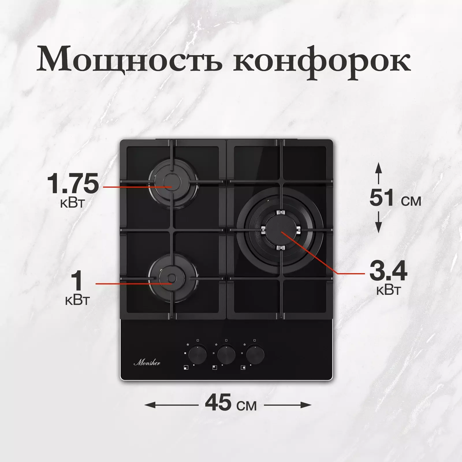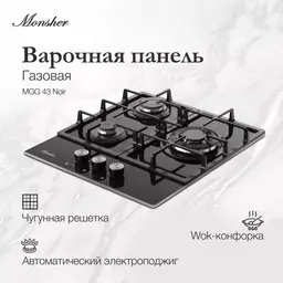 Газовая варочная поверхность Monsher Hi-tech MGG 43 Noir черный (78632)