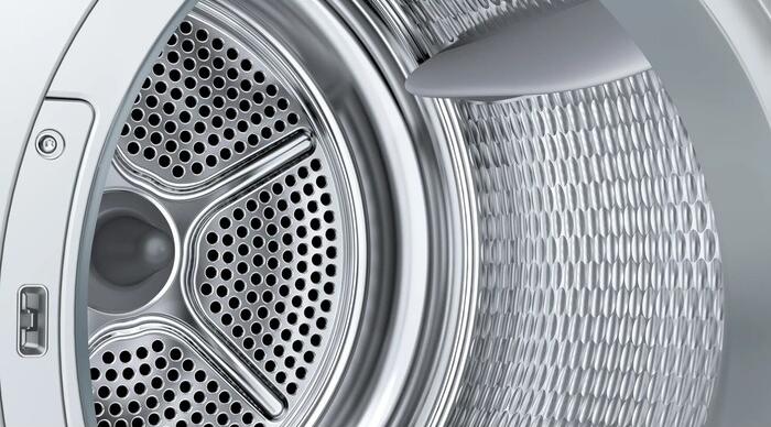 Тип сушки белья в данной модели — конденсационная с тепловым насосом. Это самый распространенный вариант, так как его просто реализовать и в работе он надежен, безопасен и удобен.