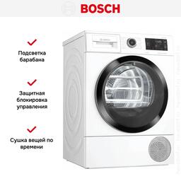 Сушильная машина Bosch предназначена для домашнего использования, поэтому имеет стандартные габариты и большое разнообразие программ. Так как она устанавливается отдельно, нужно заранее найти достаточно места в помещении.