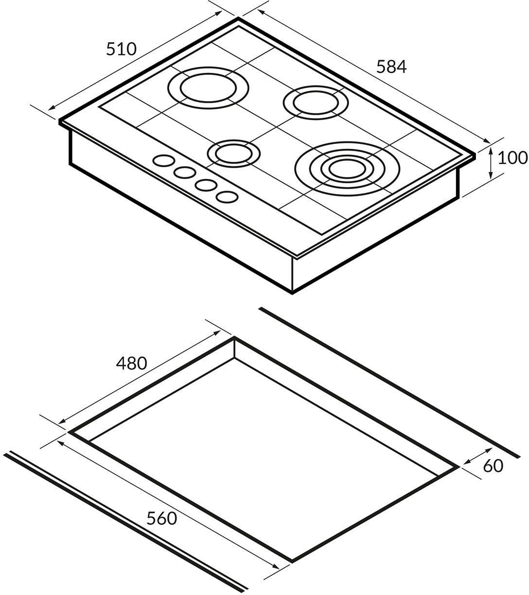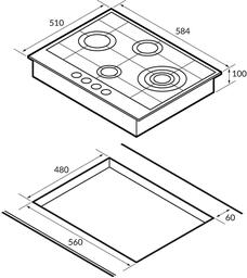 • Суммарная мощность газовых конфорок 8.6 кВт