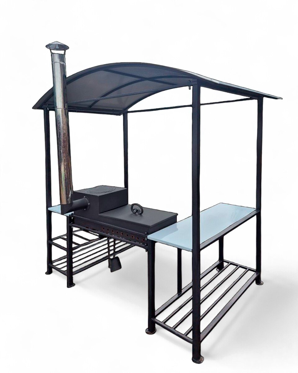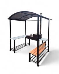 • Оснащение крыша, крышка, столешница (2 шт.), скамейка, дымоход, дровница (2 шт.), печь, кочерга, совок