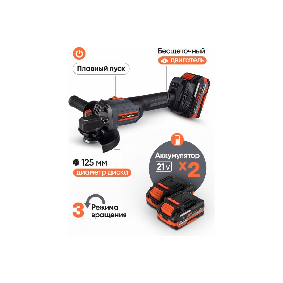 УШМ Anycons JM-125S бесщеточная (2 акк)