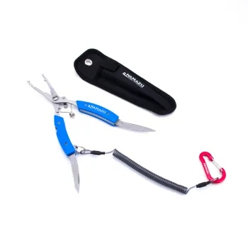 Мультитул рыболовный «Namazu 6 в 1 - N-FTS14» станет верным помощником на рыбалке и активном отдыхе. Все инструменты выполнены из нержавеющей стали. Удобные ручки выполнены из пластика. Витой шнур с карабином позволят закрепить инструмент на ремне. В комплекте предусмотрен тканевый чехол для хранения и переноски. В комплект инструментов входят:• Инструмент для заводных колец;• Ножницы для лески и шнуров;• Обжимка для трубочек;• Пассатижи;• Пила;• Нож;ХАРАКТЕРИСТИКИ:• Размер –16*5,5*1,5 см.• Толщина стали – 3 мм.• Вес – 126 г.• Ручки – ABS пластик