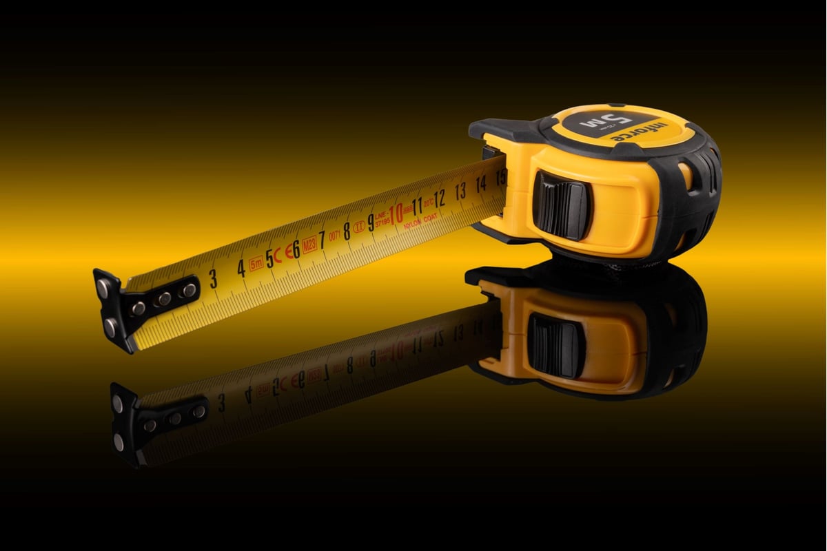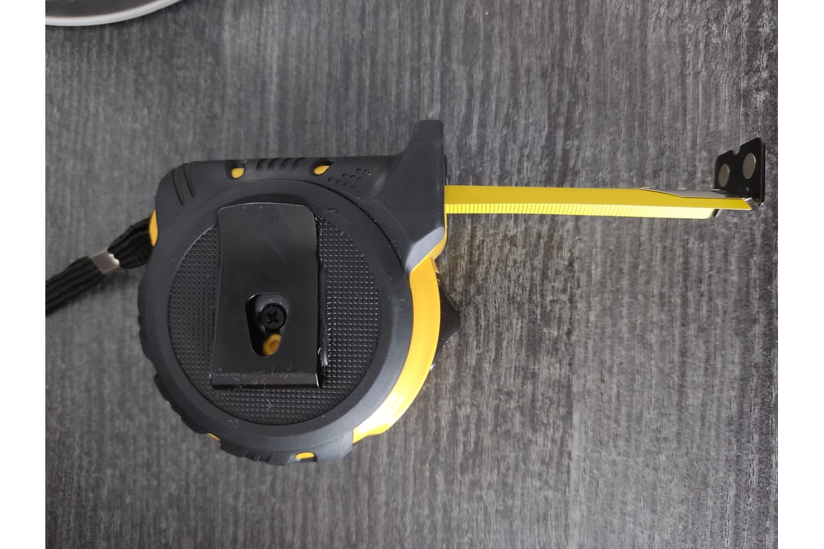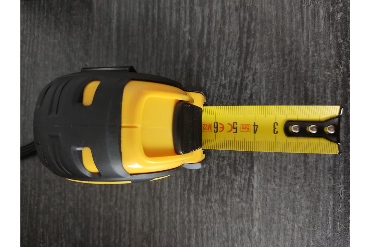 Рельефный корпус обеспечивает надежный захват и предотвращает выскальзывание рулетки из руки.