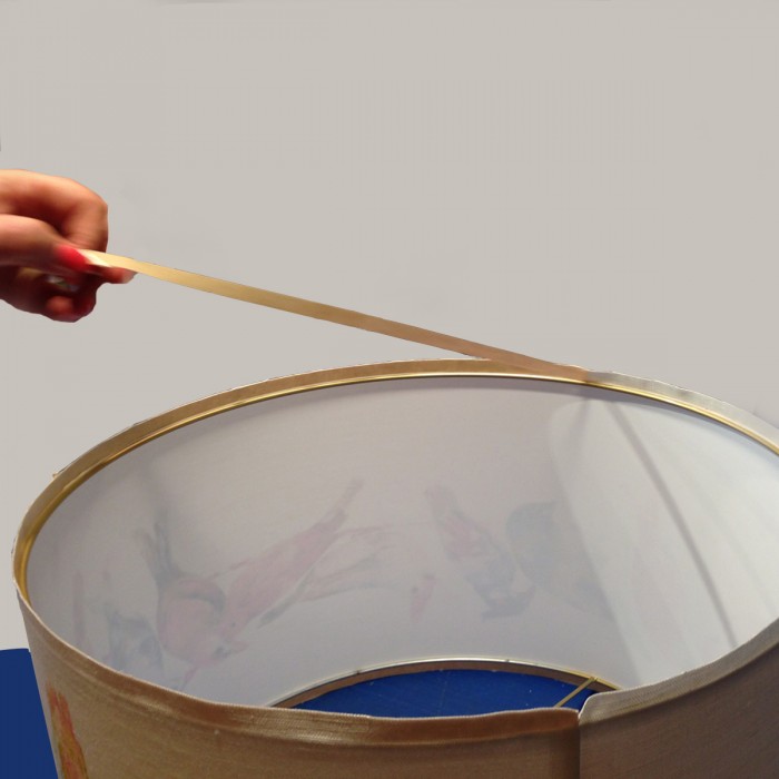 Двусторонняя клейкая лента шириной 12 мм с тонким и прочным слоем акрилового клея. Идеально подходит для приклеивания тканевого нахлеста для загиба вокруг каркаса при изготовлении абажуров с закругленным краем.