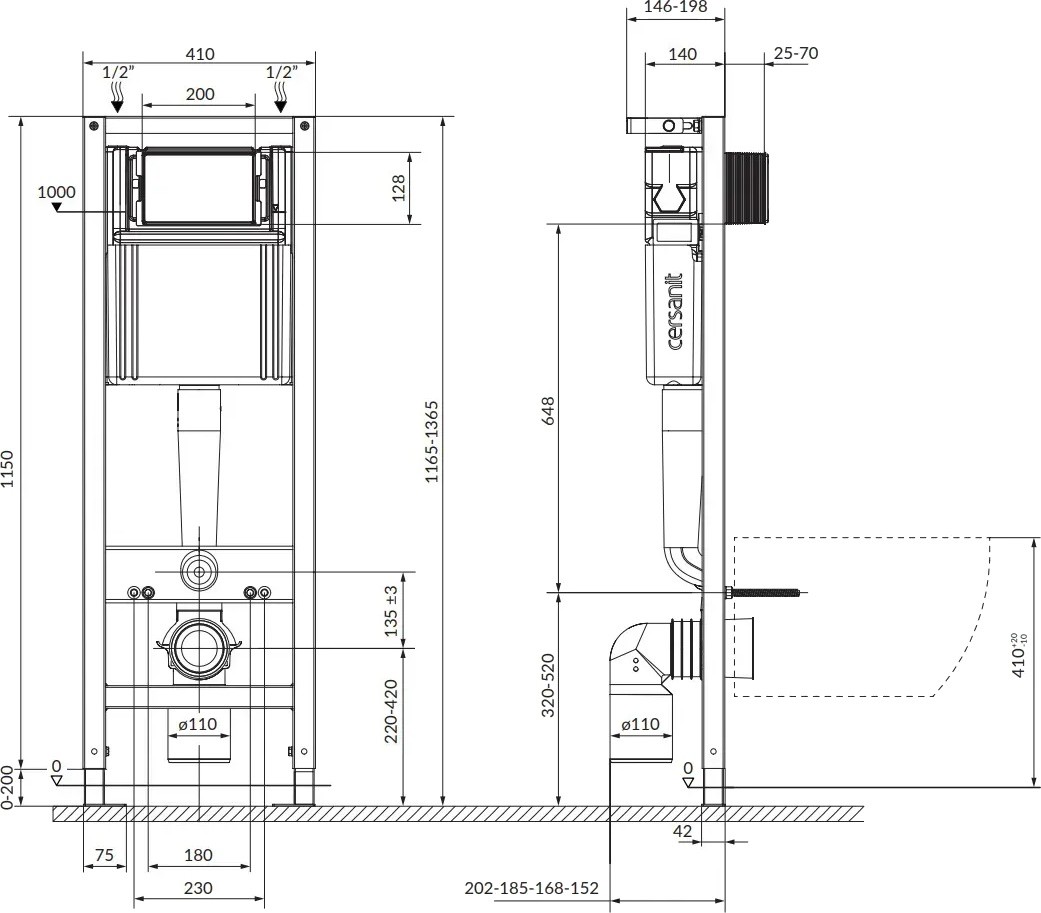 • Монтажная высота 1150 мм