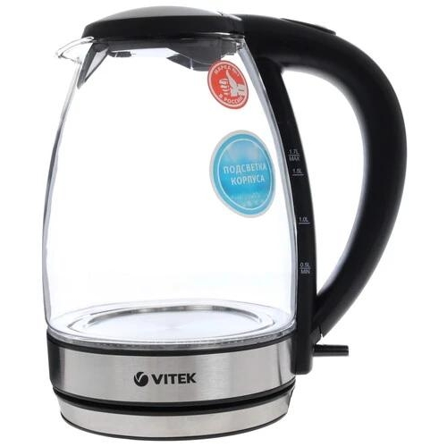 Электрочайник Vitek VT-7046 черный [термостойкое стекло, 1.7 л, 2200 Вт, фильтр, скрытый нагревательный элемент]
