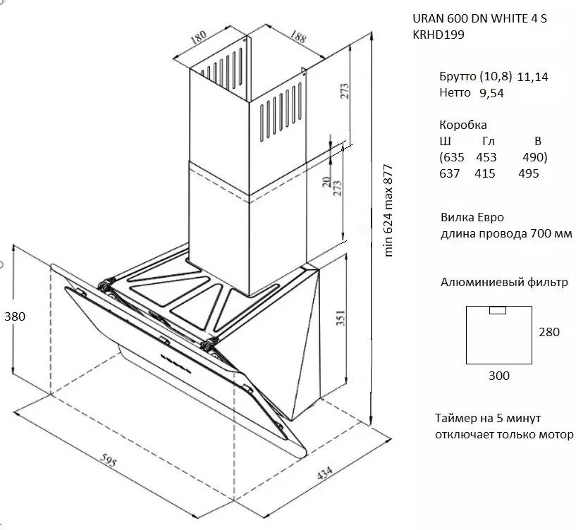 Каминная вытяжка Krona Uran 600 DN 4S белый (ка-00007193)