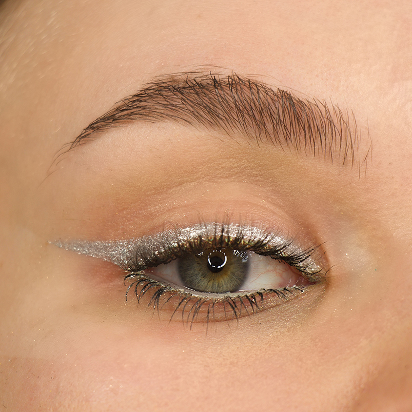 Нанесите карандаш на верхнее веко от середины зрачка в направлении к внешнему уголку. Чтобы сузить