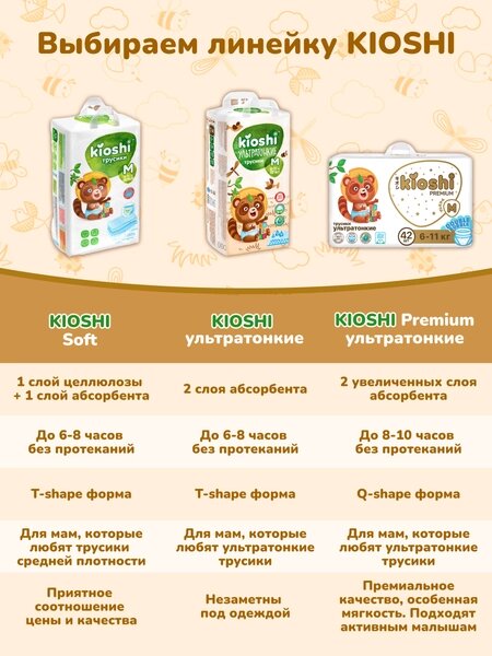 Подгузники-трусики детские KIOSHI Ультратонкие M 6-11 кг / KS210