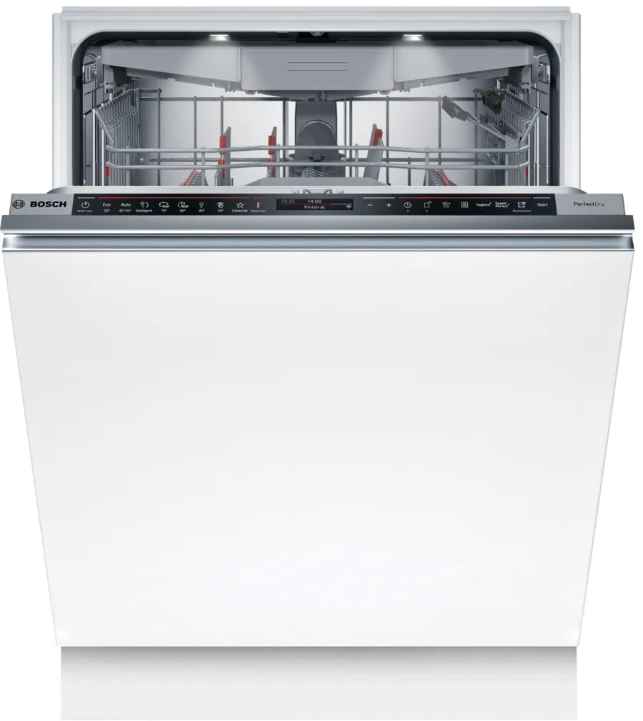 Встраиваемая модель Бош отлично впишется в любой интерьер, главное — правильно выбрать место, чтобы подвести коммуникации. Устанавливается в нишу целиком, полностью закрывается декоративной панелью. Обратите внимание: в комплекте не идет фасад, его необходимо установить самостоятельно. Имеет стандартные размеры, поэтому может не поместиться на очень маленькой кухне. В камеру можно загрузить ограниченное число комплектов: 14 шт. Комплектом считается набор посуды на одного человека, который нужен для полноценного приема пищи: глубокая и плоская тарелки, тарелка для салата, блюдце под чашку, сама чашка, ложка и вилка.