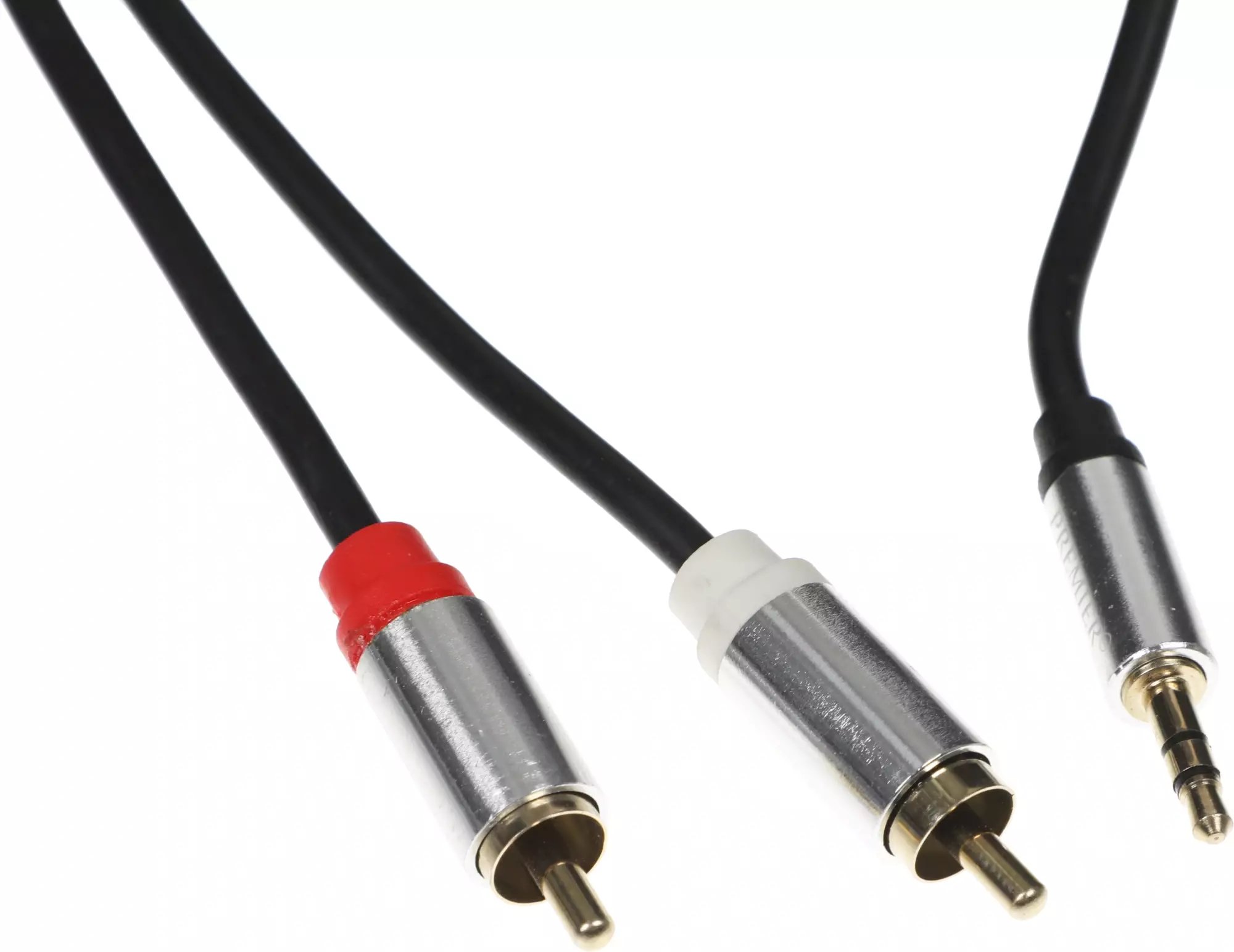 Кабель соединительный Premier 5-334 10.0 Jack 3.5 (m)/2хRCA (m), позолоченные контакты, 10м. черный/серый