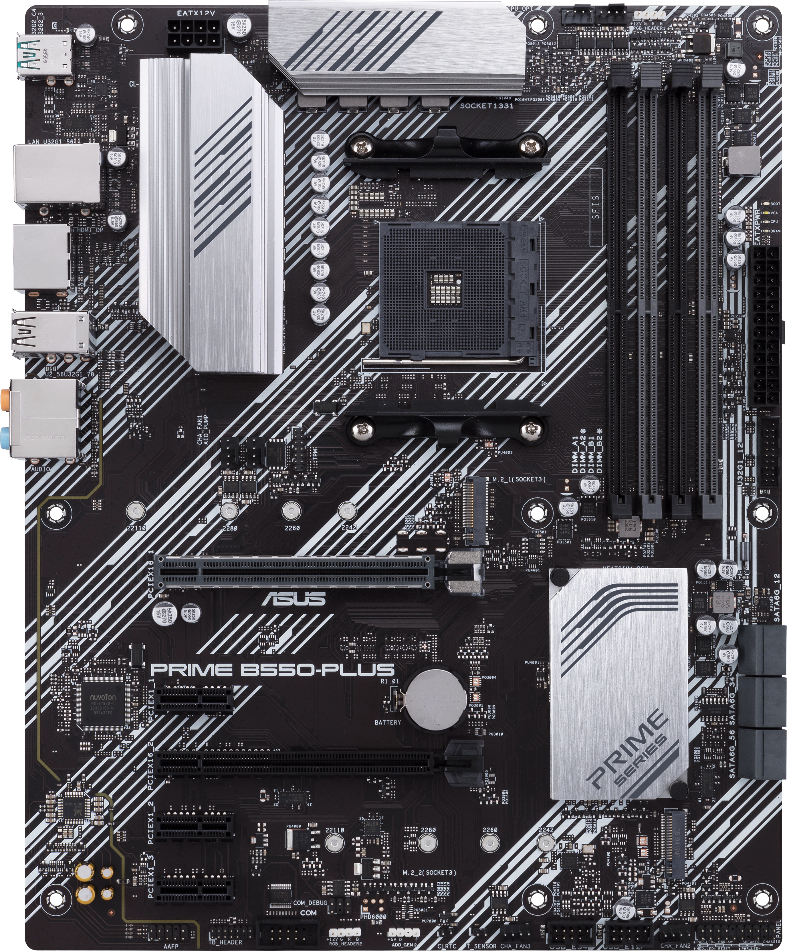 Материнская плата с чипсетом AMD B550: платформа AM4, форм-фактор ATX, два слота M.2, PCIe 4.0, 1G Ethernet, DisplayPort/HDMI, SATA 6 Гбит/с, USB 3.2 Gen2 Type-A и Type-C, разъемы для подсветки