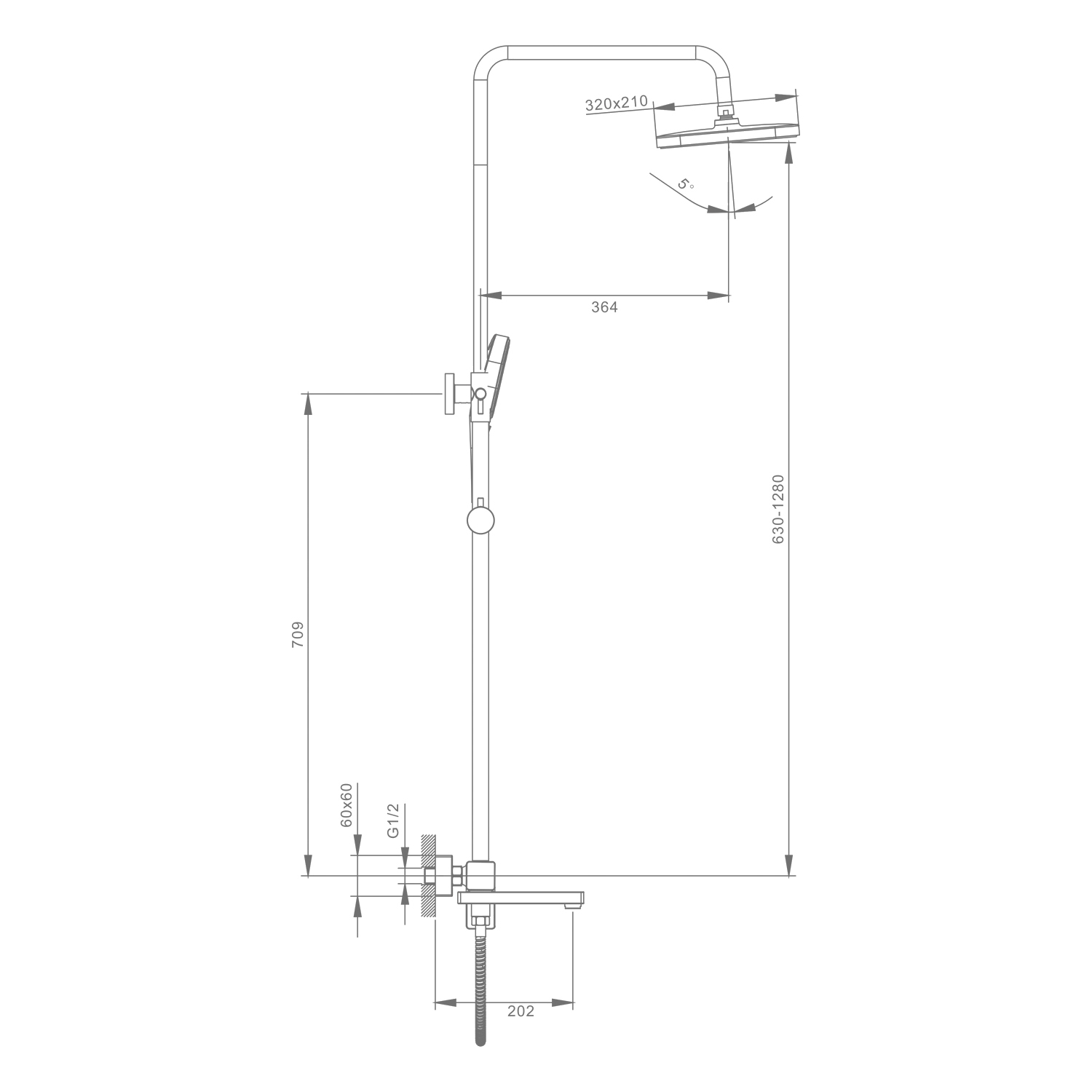 • Регулировки верхнего душа высота