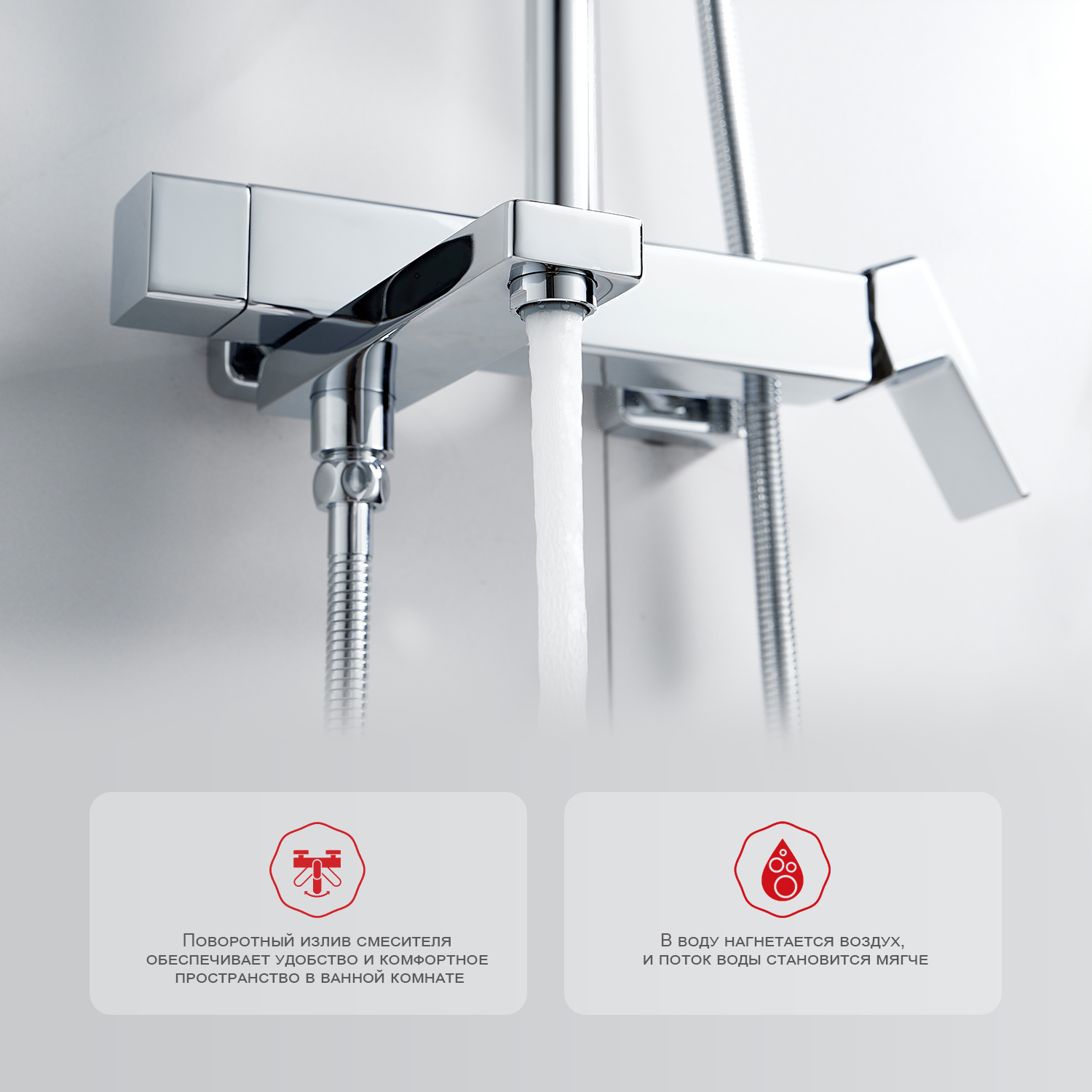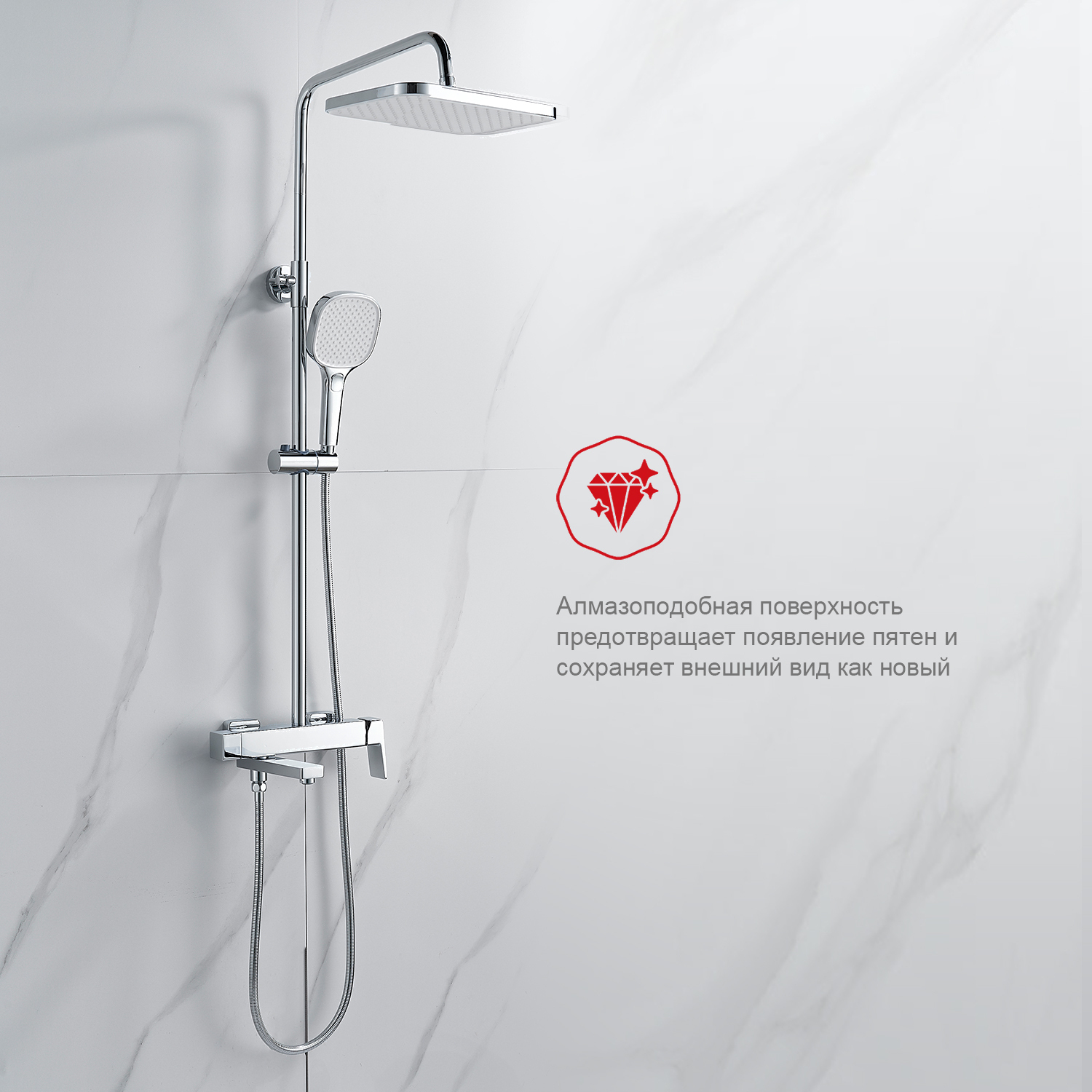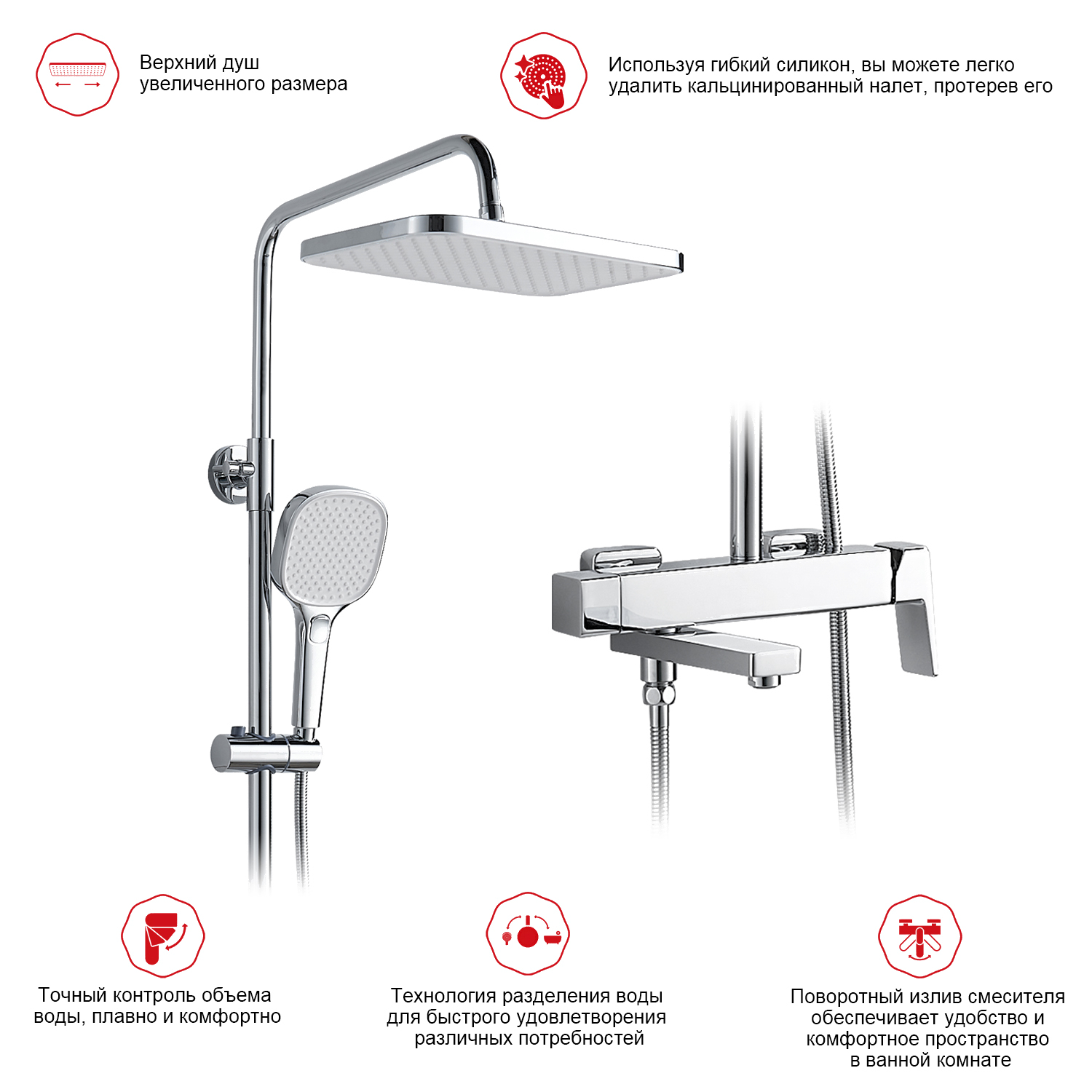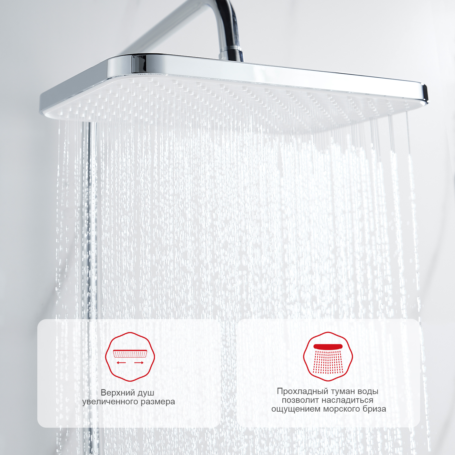 • Форма верхнего душа прямоугольник