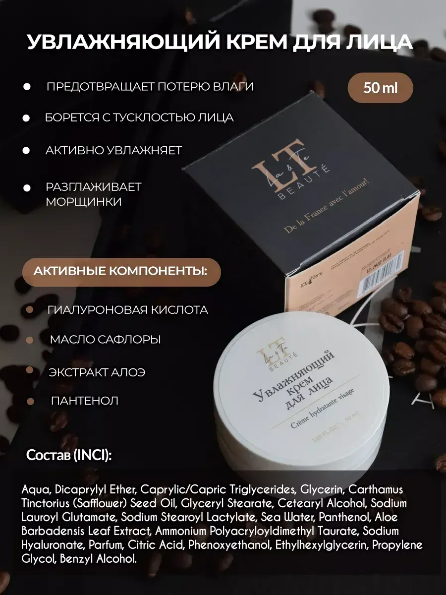 • Активные ингредиенты гиалуроновая кислота, витамин E, пантенол, экстракт кофе (зеленого), ниацинамид
