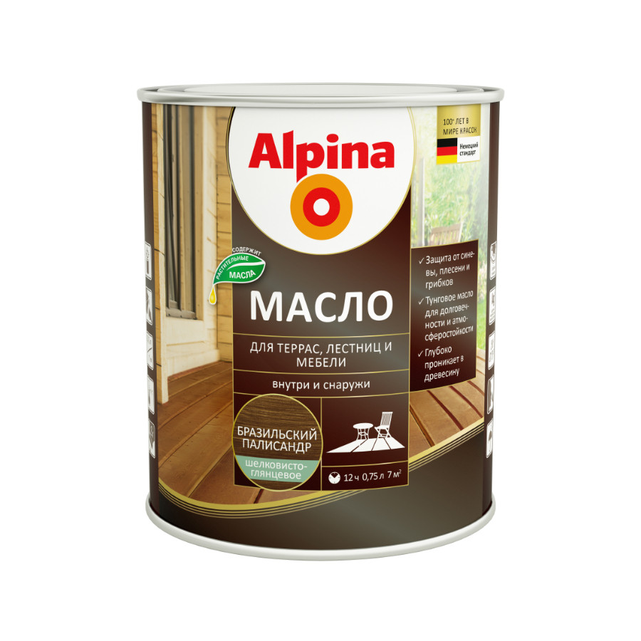 Масло Alpina для террас лестниц и мебели шелк-глянц браз палис 0,75л/0,68кг