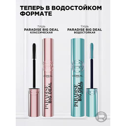 L’Oreal Paris представляет новую водостойкую тушь для ресниц Paradise Big Deal! Уникальная* силиконовая щеточка с щетинками разной длины позволяет придать невероятный равномерный объем и разделить реснички каждым взмахом кисти и увеличить их длину до 100%**. Реснички не склеиваются, а благодаря новой формуле, ты можешь добиться эффекта бесконечно наслаиваемого объема. 1, 15, 30 или 100 слоев – все зависит только от тебя, а Paradise Big Deal поможет в реализации самых смелых образов. Сделай ставку на максимальный объем! Ты этого достойна. *Среди продуктов L’Oreal Paris ** Инструментальный тест, 30 женщин. Увеличение длины ресниц до 100 процентов, эффект бесконечно наслаиваемого объема.