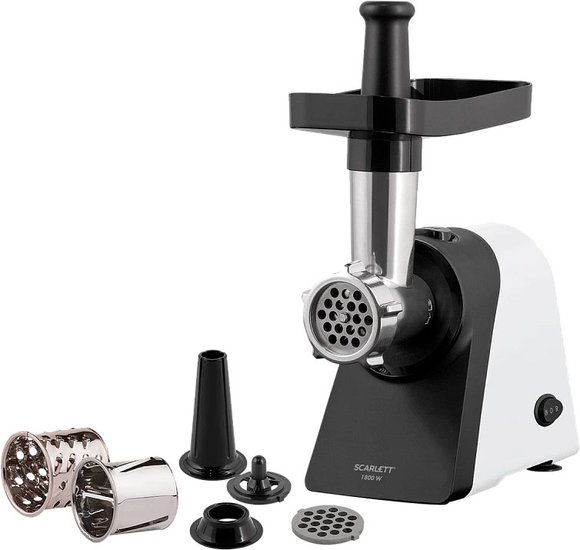 - ✅ Электрическая мясорубка Scarlett SC-MG45M27 станет вашим незаменимым помощником на кухне, позволяя быстро и легко перерабатывать мясо в фарш и готовить разнообразные блюда. ✅ В комплект входят насадки для кеббе и домашних колбасок, а также барабаны для терки и шинковки овощей. За считанные минуты вы сможете приготовить поджарку для супа или заготовки для салата, что делает эту мясорубку идеальным выбором для любителей кулинарии.✅ Мощный мотор на 1800 Вт обеспечивает впечатляющую производительность — до 2 кг фарша в минуту. Это отличное решение для тех, кто предпочитает готовить полуфабрикаты заранее и экономить время на кухне.✅ Диски с отверстиями диаметром 5 и 7 мм позволяют готовить как нежнейшие фрикадельки, так и сочные котлеты, а также множество других блюд. Вы сможете легко экспериментировать с текстурой и консистенцией фарша.✅ Удобное управление мясорубкой осуществляется с помощью одной кнопки, которая отвечает за включение, выключение и реверс. Если шнек заблокируется из-за жилок или мясных волокон, вы сможете легко вернуть их обратно, не разбирая прибор.⚠️ Система защиты от перегрева гарантирует безопасность работы устройства, останавливая его в случае перегрузки и предотвращая поломку мотора. Эта мясорубка — идеальный выбор для тех, кто ценит качество и удобство в приготовлении пищи! ✅ Электрическая мясорубка Scarlett SC-MG45M27 станет вашим незаменимым помощником на кухне, позволяя быстро и легко перерабатывать мясо в фарш и готовить разнообразные блюда. ✅ В комплект входят насадки для кеббе и домашних колбасок, а также барабаны для терки и шинковки овощей. За считанные минуты вы сможете приготовить поджарку для супа или заготовки для салата, что делает эту мясорубку идеальным выбором для любителей кулинарии.✅ Мощный мотор на 1800 Вт обеспечивает впечатляющую производительность — до 2 кг фарша в минуту. Это отличное решение для тех, кто предпочитает готовить полуфабрикаты заранее и экономить время на кухне.✅ Диски с отверстиями диаметром 5 и 7 мм позволяют готовить как нежнейшие фрикадельки, так и сочные котлеты, а также множество других блюд. Вы сможете легко экспериментировать с текстурой и консистенцией фарша.✅ Удобное управление мясорубкой осуществляется с помощью одной кнопки, которая отвечает за включение, выключение и реверс. Если шнек заблокируется из-за жилок или мясных волокон, вы сможете легко вернуть их обратно, не разбирая прибор.⚠️ Система защиты от перегрева гарантирует безопасность работы устройства, останавливая его в случае перегрузки и предотвращая поломку мотора. Эта мясорубка — идеальный выбор для тех, кто ценит качество и удобство в приготовлении пищи!