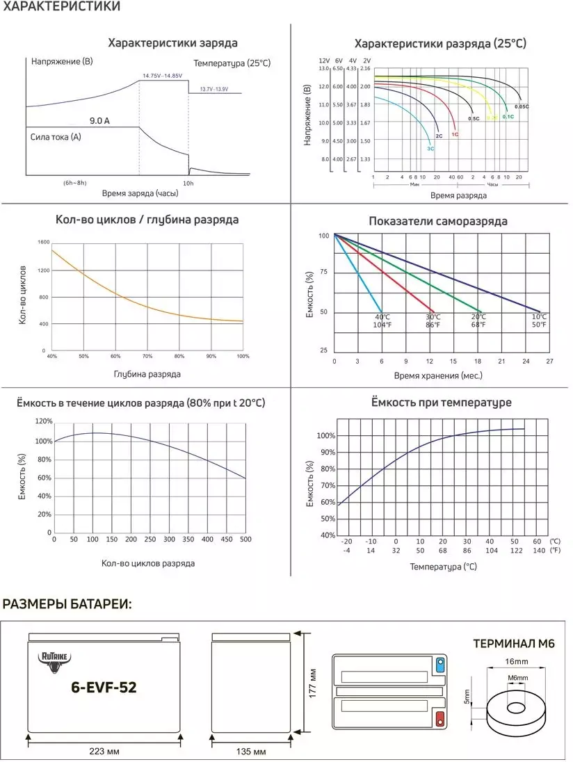 Батарея для ИБП Rutrike 6-EVF-52, 12В, 52Ач (22598)