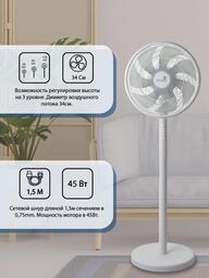 • Дополнительное описание • 4 режима обдува: ночной (тихий), дневной (умеренный), интенсивный для быстрого охлаждения, максимальный для сильного потока