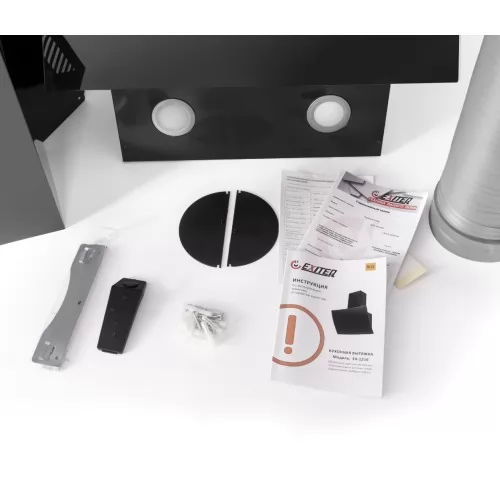 В комплектепластиковая гофра (2 м), планка для навешивания вытяжки, кронштейн для навешивания короба-удлинителя, обратный клапан, короб-удлинитель 2 шт, саморезы-дюбеля.